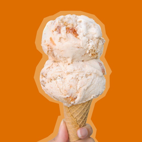 Crisp cardamom streusel and bites of thick, spiced apple compote in a cinnamon, apple, and ginger spiced ice cream. contains gluten.